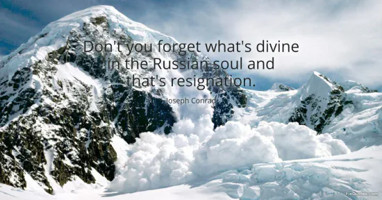 Conrad, Joseph. "Don't you forget what's divine in the Russian soul and that's resignation." FixQuotes. January 15, 2026. https://fixquotes.com/quotes/dont-you-forget-whats-divine-in-the-russian-soul-166056/.