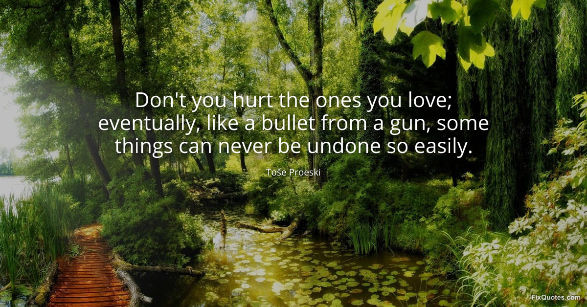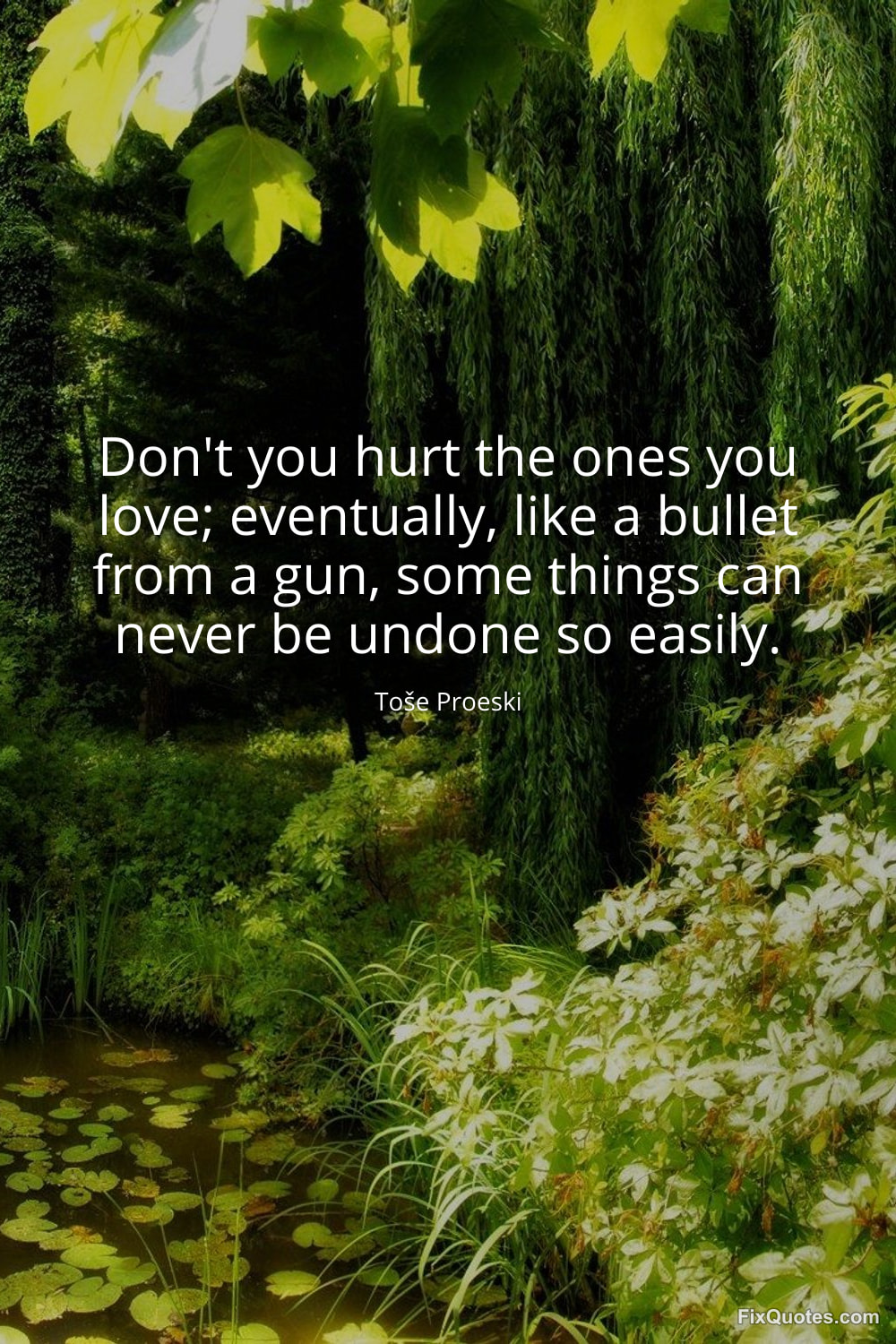 Proeski, Toše. (2026, February 15). Don't you hurt the ones you love; eventually, like a bullet from a gun, some things can never be undone so easily. FixQuotes. https://fixquotes.com/quotes/dont-you-hurt-the-ones-you-love-eventually-like-a-185445/