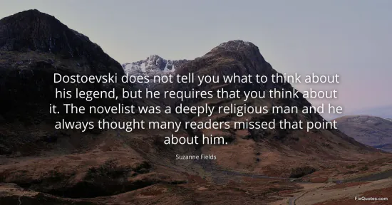 Fields, Suzanne. "Dostoevski does not tell you what to think about his legend, but he requires that you think about it. The novelist was a deeply religious man and he always thought many readers missed that point about him." FixQuotes. January 15, 2026. https://fixquotes.com/quotes/dostoevski-does-not-tell-you-what-to-think-about-154882/.