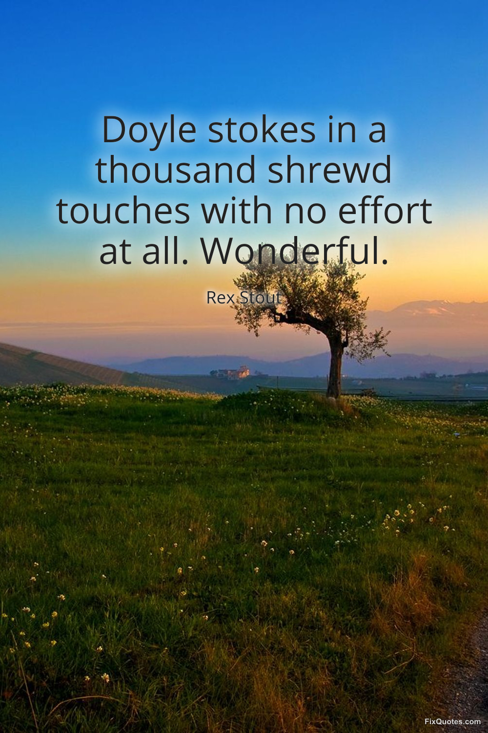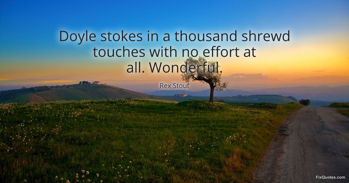 Stout, Rex. "Doyle stokes in a thousand shrewd touches with no effort at all. Wonderful." FixQuotes. January 16, 2026. https://fixquotes.com/quotes/doyle-stokes-in-a-thousand-shrewd-touches-with-no-94202/.