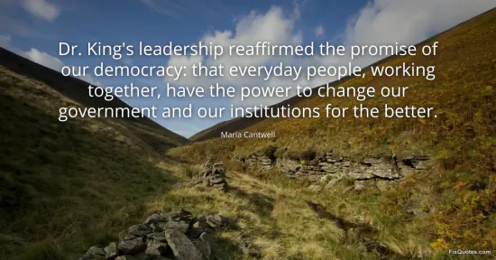 Cantwell, Maria. (2026, January 16). Dr. King's leadership reaffirmed the promise of our democracy: that everyday people, working together, have the power to change our government and our institutions for the better. FixQuotes. https://fixquotes.com/quotes/dr-kings-leadership-reaffirmed-the-promise-of-our-97104/