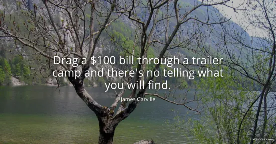 Carville, James. "Drag a $100 bill through a trailer camp and there's no telling what you will find." FixQuotes. February 10, 2026. https://fixquotes.com/quotes/drag-a-100-bill-through-a-trailer-camp-and-theres-68718/.