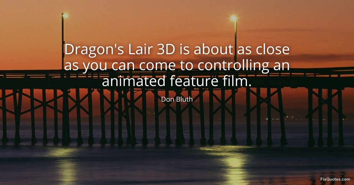 Bluth, Don. "Dragon's Lair 3D is about as close as you can come to controlling an animated feature film." FixQuotes. January 17, 2026. https://fixquotes.com/quotes/dragons-lair-3d-is-about-as-close-as-you-can-come-76622/.