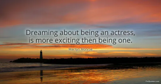 Monroe, Marilyn. "Dreaming about being an actress, is more exciting then being one." FixQuotes. January 18, 2026. https://fixquotes.com/quotes/dreaming-about-being-an-actress-is-more-exciting-13706/.