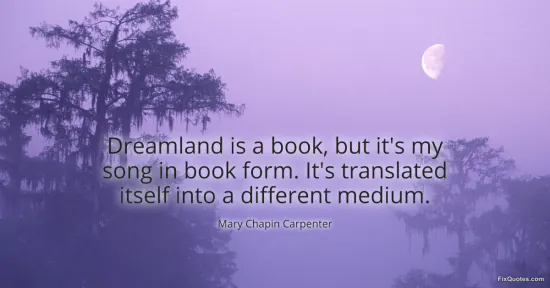 Carpenter, Mary Chapin. (2026, January 16). Dreamland is a book, but it's my song in book form. It's translated itself into a different medium. FixQuotes. https://fixquotes.com/quotes/dreamland-is-a-book-but-its-my-song-in-book-form-82386/