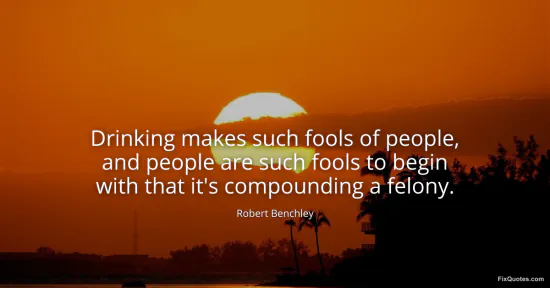 Benchley, Robert. "Drinking makes such fools of people, and people are such fools to begin with that it's compounding a felony." FixQuotes. January 17, 2026. https://fixquotes.com/quotes/drinking-makes-such-fools-of-people-and-people-64446/.