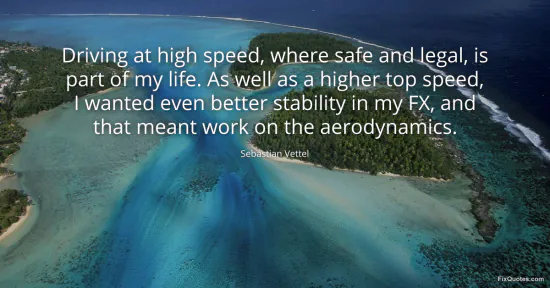 Vettel, Sebastian. (2026, February 18). Driving at high speed, where safe and legal, is part of my life. As well as a higher top speed, I wanted even better stability in my FX, and that meant work on the aerodynamics. FixQuotes. https://fixquotes.com/quotes/driving-at-high-speed-where-safe-and-legal-is-73627/