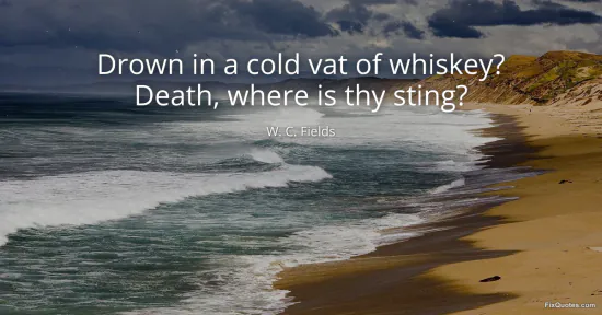 Fields, W. C. (2026, February 8). Drown in a cold vat of whiskey? Death, where is thy sting? FixQuotes. https://fixquotes.com/quotes/drown-in-a-cold-vat-of-whiskey-death-where-is-thy-2224/