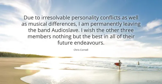 Cornell, Chris. (2026, January 15). Due to irresolvable personality conflicts as well as musical differences, I am permanently leaving the band Audioslave. I wish the other three members nothing but the best in all of their future endeavours. FixQuotes. https://fixquotes.com/quotes/due-to-irresolvable-personality-conflicts-as-well-150299/