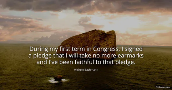 Bachmann, Michele. (2026, January 17). During my first term in Congress, I signed a pledge that I will take no more earmarks and I've been faithful to that pledge. FixQuotes. https://fixquotes.com/quotes/during-my-first-term-in-congress-i-signed-a-72955/