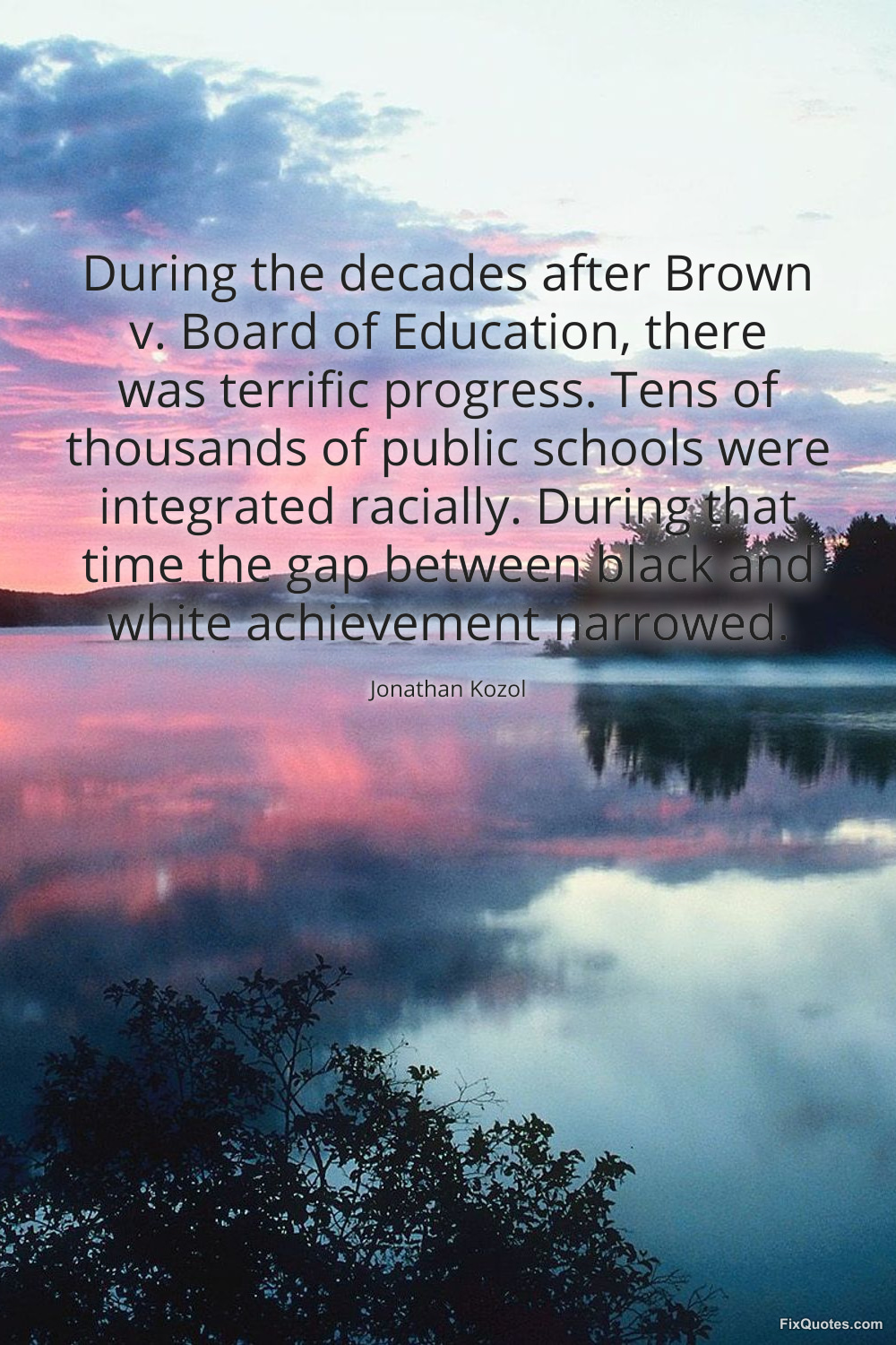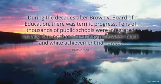Kozol, Jonathan. (2026, February 16). During the decades after Brown v. Board of Education, there was terrific progress. Tens of thousands of public schools were integrated racially. During that time the gap between black and white achievement narrowed. FixQuotes. https://fixquotes.com/quotes/during-the-decades-after-brown-v-board-of-68564/