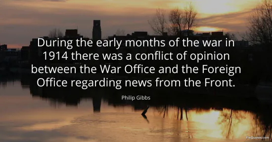 Gibbs, Philip. "During the early months of the war in 1914 there was a conflict of opinion between the War Office and the Foreign Office regarding news from the Front." FixQuotes. January 16, 2026. https://fixquotes.com/quotes/during-the-early-months-of-the-war-in-1914-there-90526/.