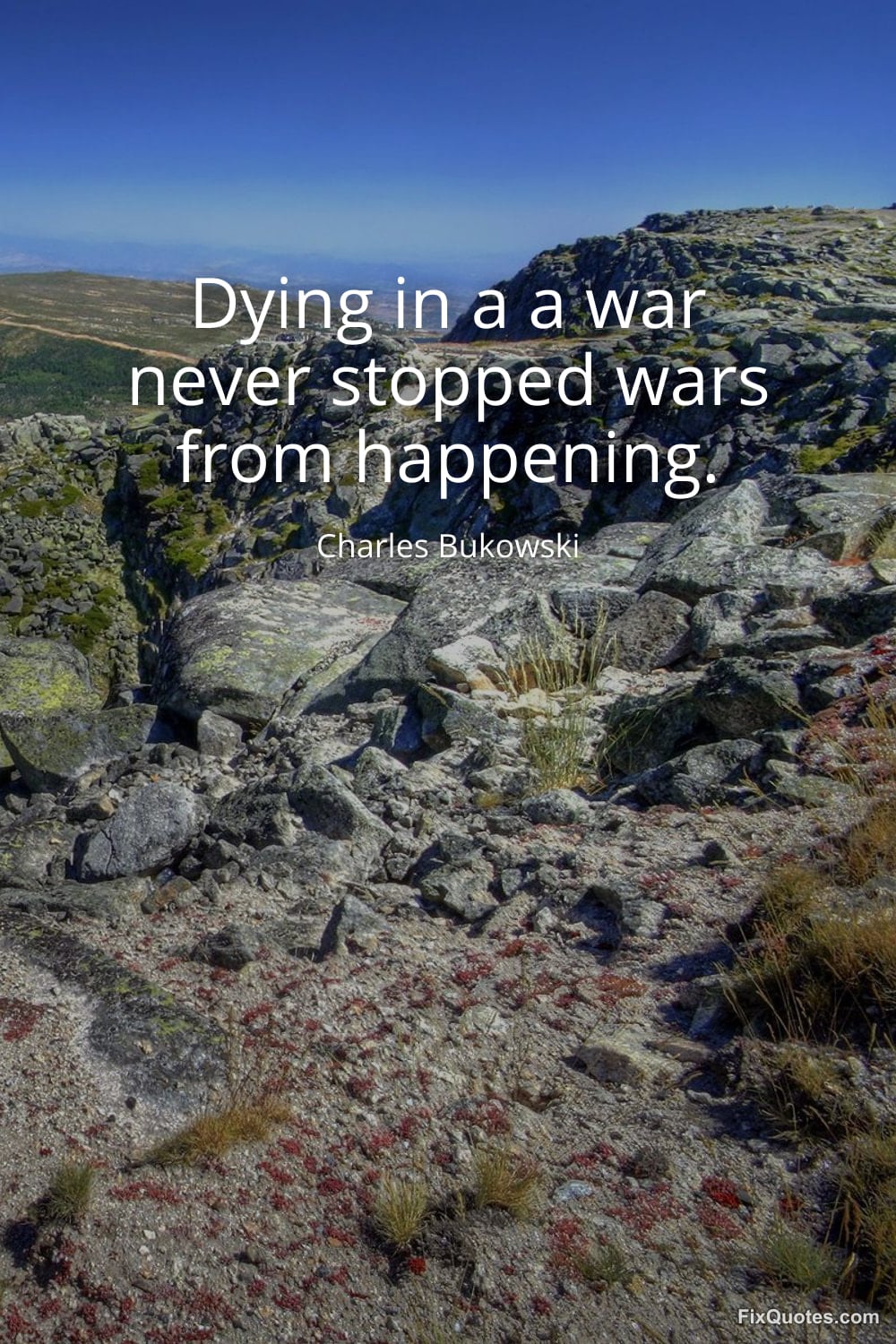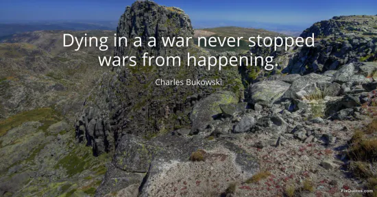 Bukowski, Charles. (2026, February 10). Dying in a a war never stopped wars from happening. FixQuotes. https://fixquotes.com/quotes/dying-in-a-a-war-never-stopped-wars-from-happening-185215/