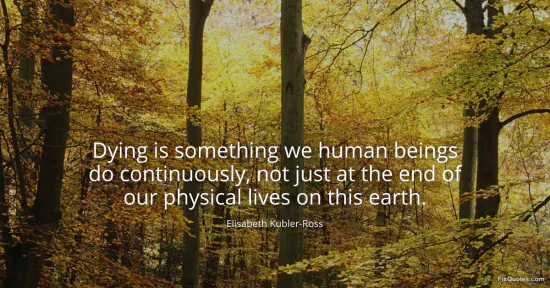 Kubler-Ross, Elisabeth. (2026, January 18). Dying is something we human beings do continuously, not just at the end of our physical lives on this earth. FixQuotes. https://fixquotes.com/quotes/dying-is-something-we-human-beings-do-2961/