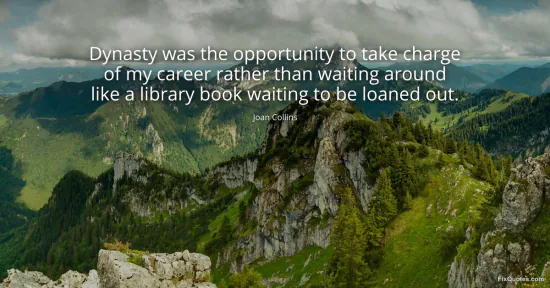 Collins, Joan. "Dynasty was the opportunity to take charge of my career rather than waiting around like a library book waiting to be loaned out." FixQuotes. January 15, 2026. https://fixquotes.com/quotes/dynasty-was-the-opportunity-to-take-charge-of-my-160453/.