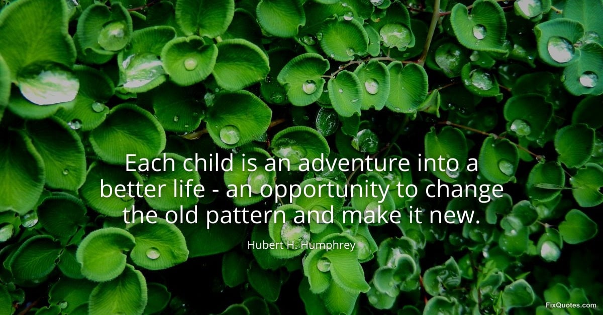 Humphrey, Hubert H. (2026, January 17). Each child is an adventure into a better life - an opportunity to change the old pattern and make it new. FixQuotes. https://fixquotes.com/quotes/each-child-is-an-adventure-into-a-better-life-61880/
