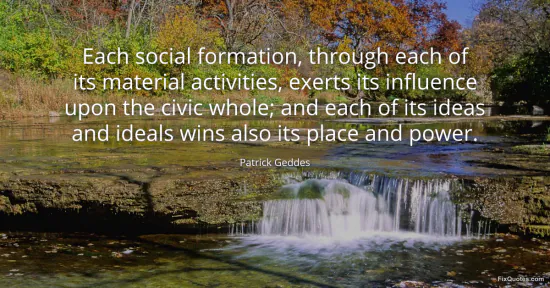 Geddes, Patrick. (2026, January 15). Each social formation, through each of its material activities, exerts its influence upon the civic whole; and each of its ideas and ideals wins also its place and power. FixQuotes. https://fixquotes.com/quotes/each-social-formation-through-each-of-its-163645/