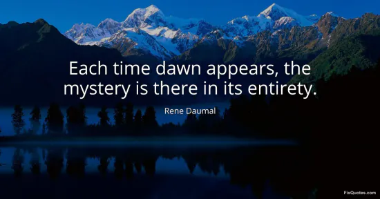 Daumal, Rene. "Each time dawn appears, the mystery is there in its entirety." FixQuotes. January 15, 2026. https://fixquotes.com/quotes/each-time-dawn-appears-the-mystery-is-there-in-159545/.