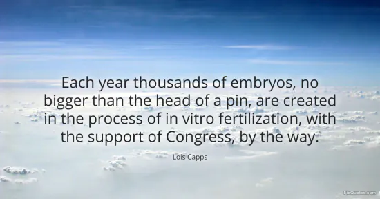 Capps, Lois. (2026, January 16). Each year thousands of embryos, no bigger than the head of a pin, are created in the process of in vitro fertilization, with the support of Congress, by the way. FixQuotes. https://fixquotes.com/quotes/each-year-thousands-of-embryos-no-bigger-than-the-88257/