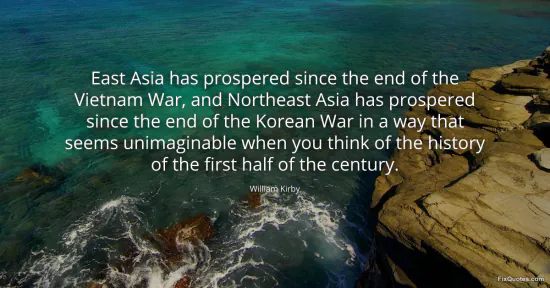 Kirby, William. "East Asia has prospered since the end of the Vietnam War, and Northeast Asia has prospered since the end of the Korean War in a way that seems unimaginable when you think of the history of the first half of the century." FixQuotes. January 15, 2026. https://fixquotes.com/quotes/east-asia-has-prospered-since-the-end-of-the-105822/.
