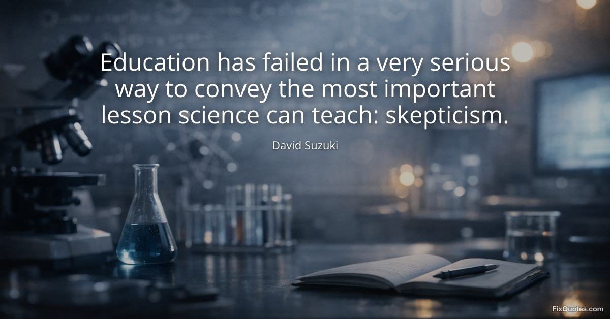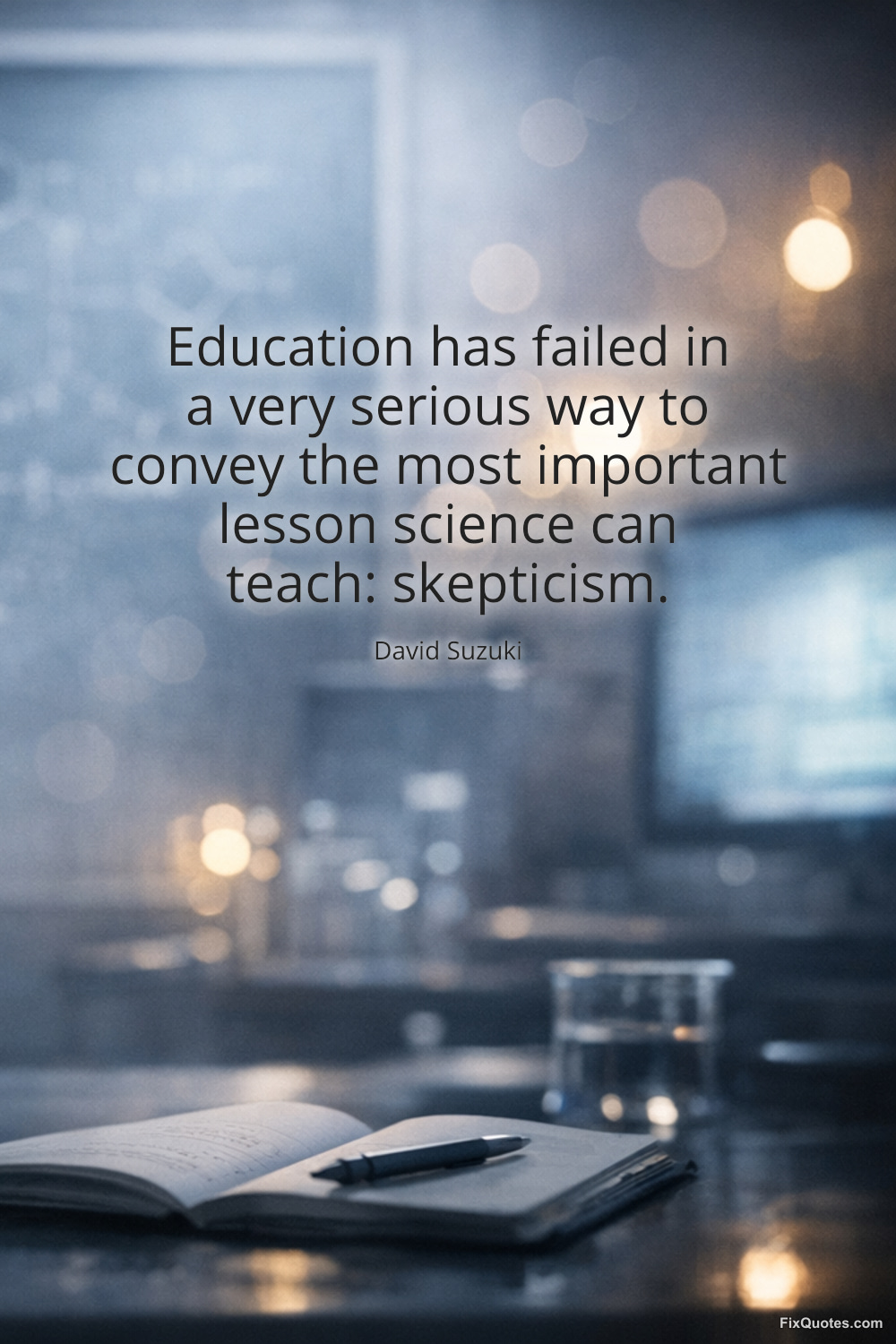 Suzuki, David. (2026, February 19). Education has failed in a very serious way to convey the most important lesson science can teach: skepticism. FixQuotes. https://fixquotes.com/quotes/education-has-failed-in-a-very-serious-way-to-88018/
