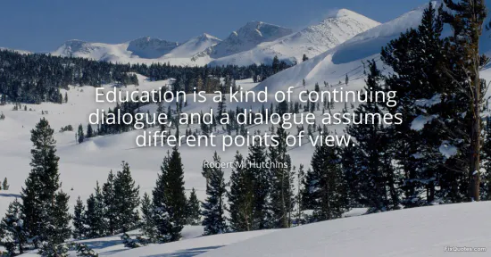 Hutchins frames education less as a delivery system and more as a live argument that never really ends. Calling it a "continuing dialogue" is a deliberate rebuke to the classroom-as-assembly-line model: knowledge isn’t a sealed package passed from expert to novice, but something tested, revised, and clarified through sustained exchange. The line is doing quiet institutional critique. If education is dialogue, then lecturing as monologue becomes an abdication, and credentialing without questioning becomes a kind of intellectual bureaucracy.