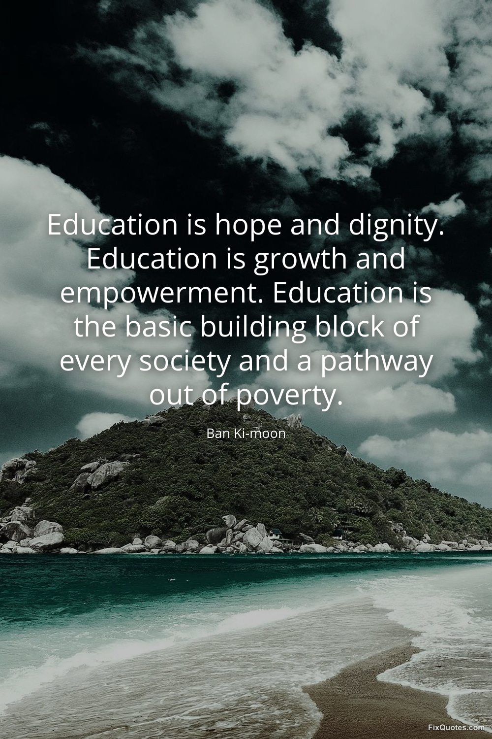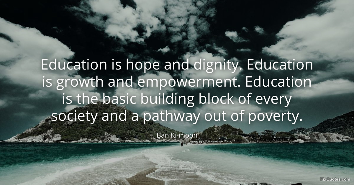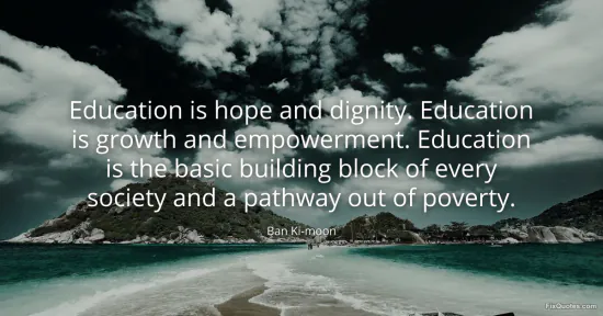 Ki-moon, Ban. "Education is hope and dignity. Education is growth and empowerment. Education is the basic building block of every society and a pathway out of poverty." FixQuotes. March 8, 2026. https://fixquotes.com/quotes/education-is-hope-and-dignity-education-is-growth-185750/.