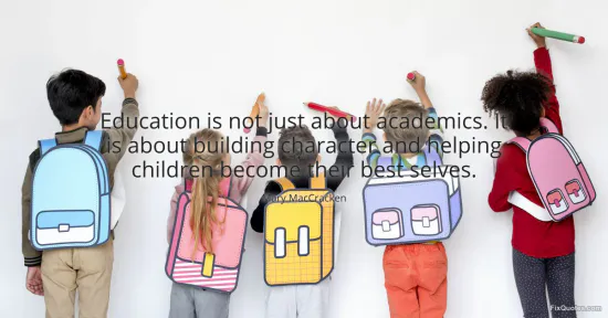 MacCracken’s line does a neat bit of cultural jujitsu: it takes the word “education,” so often reduced to test scores, credentials, and a future paycheck, and drags it back into the messier realm of values. The first sentence sets up a quiet rebuke to the technocratic view of schooling. “Not just about academics” reads like a polite correction, but the intent is sharper: stop pretending the classroom is a neutral pipeline for information. Every school day is already shaping kids’ habits, self-concepts, and moral instincts, whether adults admit it or not.