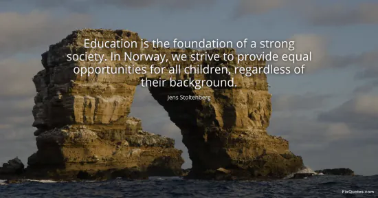 Stoltenberg, Jens. (2026, January 15). Education is the foundation of a strong society. In Norway, we strive to provide equal opportunities for all children, regardless of their background. FixQuotes. https://fixquotes.com/quotes/education-is-the-foundation-of-a-strong-society-172264/