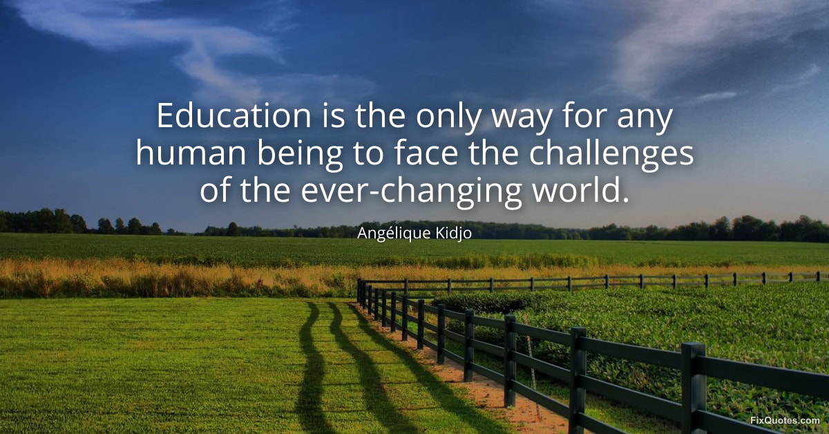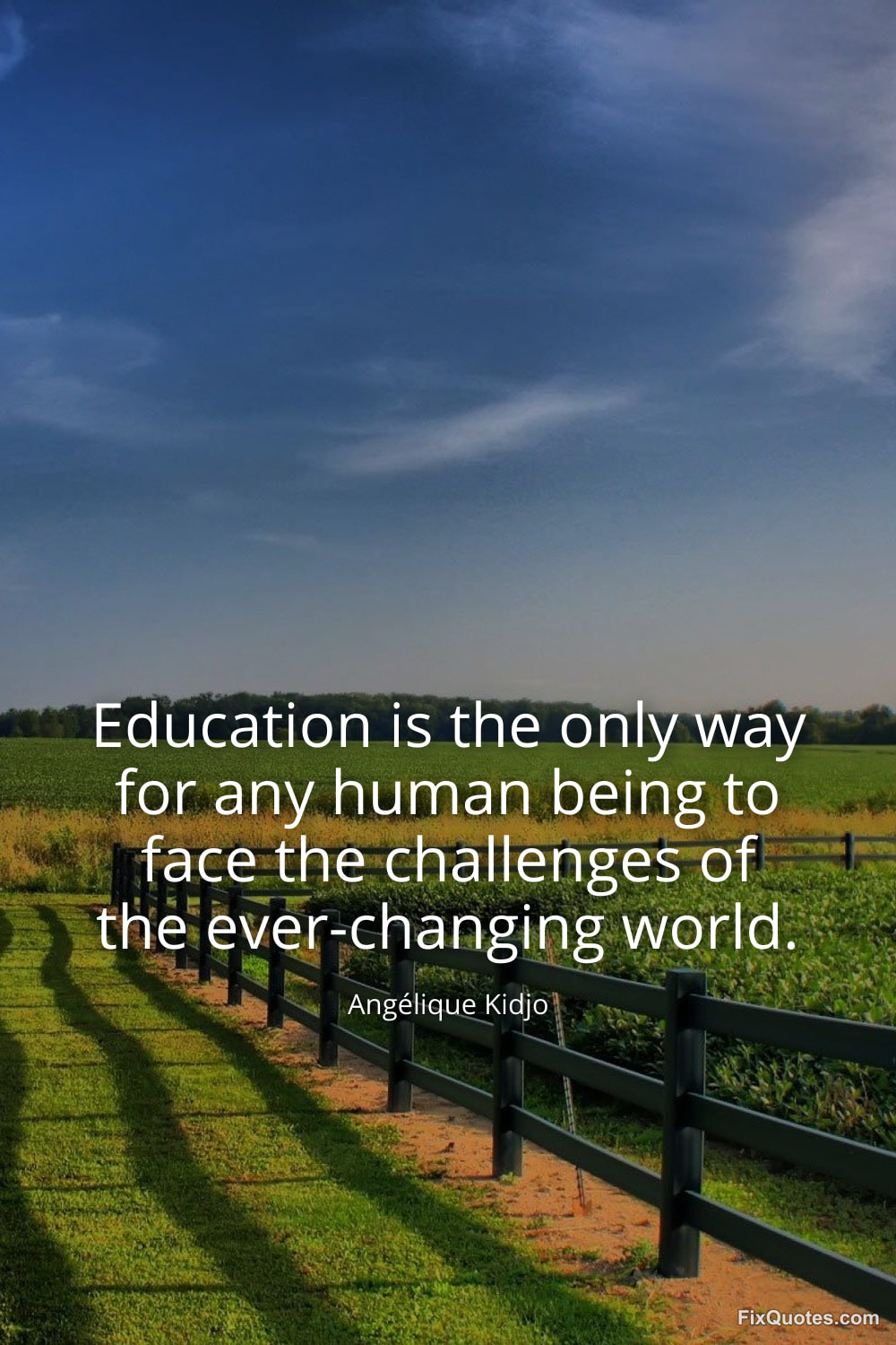Kidjo, Angélique. (2026, February 16). Education is the only way for any human being to face the challenges of the ever-changing world. FixQuotes. https://fixquotes.com/quotes/education-is-the-only-way-for-any-human-being-to-185381/
