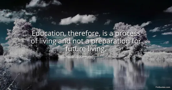 | Source | John Dewey, Democracy and Education (1916). Contains the sentence: "Education, therefore, is a process of living and not a preparation for future living." |