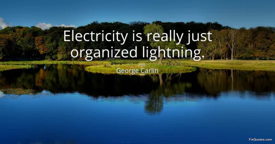 | Source | "Electricity is really just organized lightning." — George Carlin. Attribution listed on Wikiquote (George Carlin); primary source not specified. |