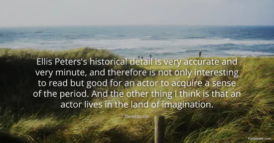 Jacobi, Derek. (2026, January 17). Ellis Peters's historical detail is very accurate and very minute, and therefore is not only interesting to read but good for an actor to acquire a sense of the period. And the other thing I think is that an actor lives in the land of imagination. FixQuotes. https://fixquotes.com/quotes/ellis-peterss-historical-detail-is-very-accurate-51126/
