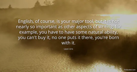 Uris, Leon. (2026, February 18). English, of course, is your major tool, but it is not nearly so important as other aspects of writing, for example, you have to have some natural ability, you can't buy it, no one puts it there, you're born with it. FixQuotes. https://fixquotes.com/quotes/english-of-course-is-your-major-tool-but-it-is-88227/