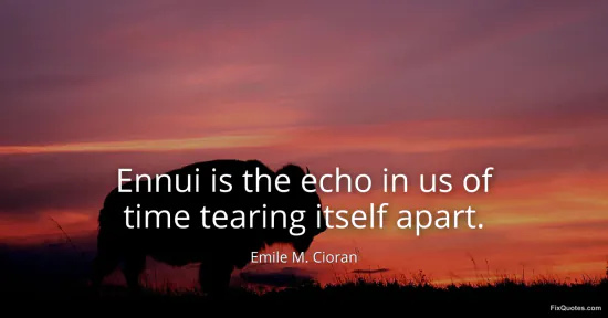 Cioran, Emile M. "Ennui is the echo in us of time tearing itself apart." FixQuotes. January 15, 2026. https://fixquotes.com/quotes/ennui-is-the-echo-in-us-of-time-tearing-itself-145444/.
