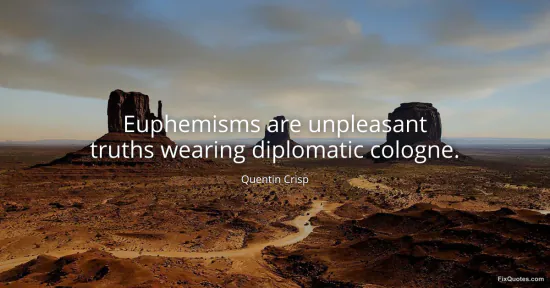 Crisp, Quentin. (2026, January 18). Euphemisms are unpleasant truths wearing diplomatic cologne. FixQuotes. https://fixquotes.com/quotes/euphemisms-are-unpleasant-truths-wearing-6441/