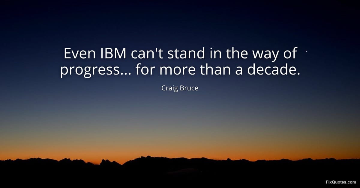 Bruce, Craig. (2026, January 15). Even IBM can't stand in the way of progress... for more than a decade. FixQuotes. https://fixquotes.com/quotes/even-ibm-cant-stand-in-the-way-of-progress-for-143449/