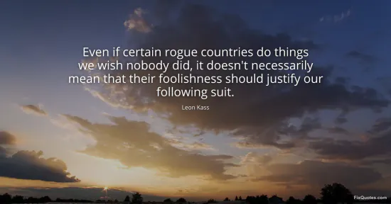 Kass, Leon. "Even if certain rogue countries do things we wish nobody did, it doesn't necessarily mean that their foolishness should justify our following suit." FixQuotes. January 16, 2026. https://fixquotes.com/quotes/even-if-certain-rogue-countries-do-things-we-wish-127610/.