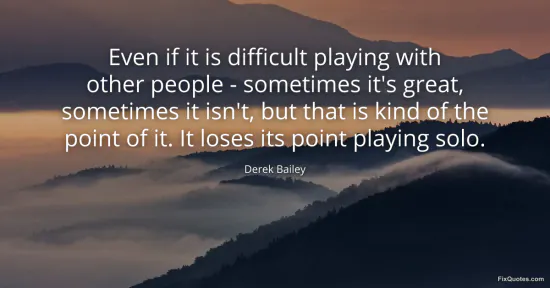 Bailey, Derek. "Even if it is difficult playing with other people - sometimes it's great, sometimes it isn't, but that is kind of the point of it. It loses its point playing solo." FixQuotes. January 17, 2026. https://fixquotes.com/quotes/even-if-it-is-difficult-playing-with-other-people-51122/.