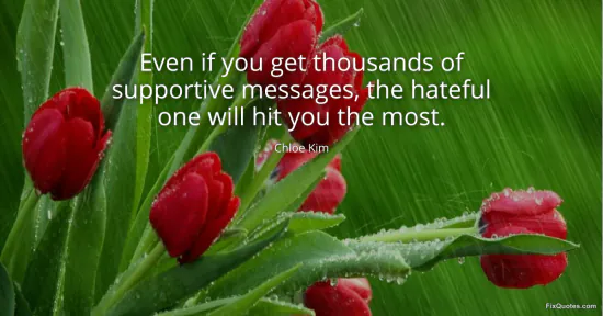 Kim, Chloe. (2026, February 23). Even if you get thousands of supportive messages, the hateful one will hit you the most. FixQuotes. https://fixquotes.com/quotes/even-if-you-get-thousands-of-supportive-messages-185662/