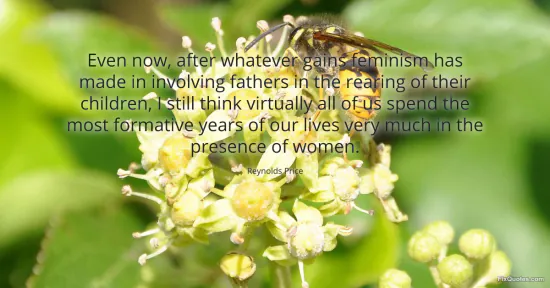 Price, Reynolds. (2026, January 16). Even now, after whatever gains feminism has made in involving fathers in the rearing of their children, I still think virtually all of us spend the most formative years of our lives very much in the presence of women. FixQuotes. https://fixquotes.com/quotes/even-now-after-whatever-gains-feminism-has-made-131367/