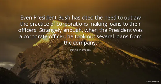 Thompson, Bennie. (2026, January 17). Even President Bush has cited the need to outlaw the practice of corporations making loans to their officers. Strangely enough, when the President was a corporate officer, he took out several loans from the company. FixQuotes. https://fixquotes.com/quotes/even-president-bush-has-cited-the-need-to-outlaw-62736/