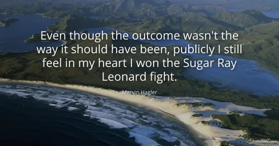 "Even though the outcome wasn't the way it should have been, publicly I still feel in my heart I won the Sugar Ray Leonard fight." FixQuotes, 16 Jan. 2026, https://fixquotes.com/quotes/even-though-the-outcome-wasnt-the-way-it-should-135725/. Accessed 12 Feb. 2026.