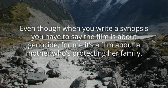 Žbanić, Jasmila. (2026, February 16). Even though when you write a synopsis you have to say the film is about genocide, for me it's a film about a mother who's protecting her family. FixQuotes. https://fixquotes.com/quotes/even-though-when-you-write-a-synopsis-you-have-to-185396/