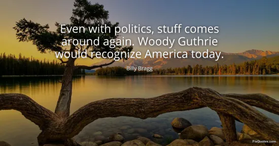 Bragg, Billy. (2026, January 15). Even with politics, stuff comes around again. Woody Guthrie would recognize America today. FixQuotes. https://fixquotes.com/quotes/even-with-politics-stuff-comes-around-again-woody-39073/