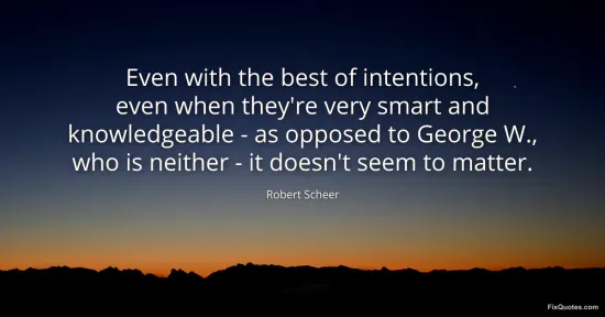 Scheer, Robert. "Even with the best of intentions, even when they're very smart and knowledgeable - as opposed to George W., who is neither - it doesn't seem to matter." FixQuotes. January 16, 2026. https://fixquotes.com/quotes/even-with-the-best-of-intentions-even-when-theyre-102462/.