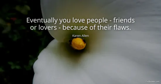 Allen, Karen. "Eventually you love people - friends or lovers - because of their flaws." FixQuotes. January 16, 2026. https://fixquotes.com/quotes/eventually-you-love-people-friends-or-lovers-103403/.