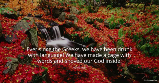 West, Morris. (2026, January 17). Ever since the Greeks, we have been drunk with language! We have made a cage with words and shoved our God inside! FixQuotes. https://fixquotes.com/quotes/ever-since-the-greeks-we-have-been-drunk-with-58354/