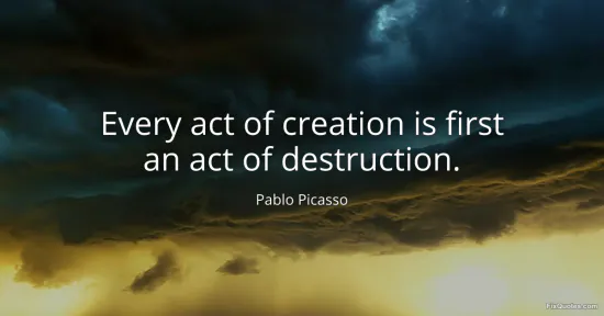 Creation, in Picasso's world, isn't a gentle additive process. It's an assault on the existing order: habits of seeing, inherited rules of draftsmanship, the polite lie that art should resemble what it's about. "Every act of creation is first an act of destruction" lands because it makes the violence upfront, refusing the comforting story that innovation simply blooms. Before the new can appear, something has to be broken: a style, a tradition, sometimes the maker's own ego.