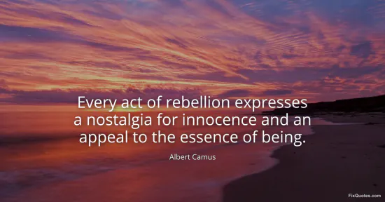 "Every act of rebellion expresses a nostalgia for innocence and an appeal to the essence of being." FixQuotes, 18 Jan. 2026, https://fixquotes.com/quotes/every-act-of-rebellion-expresses-a-nostalgia-for-15132/. Accessed 8 Feb. 2026.
